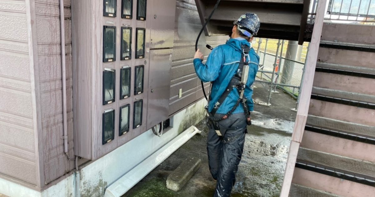 アパートの外壁の高圧洗浄を行いました。